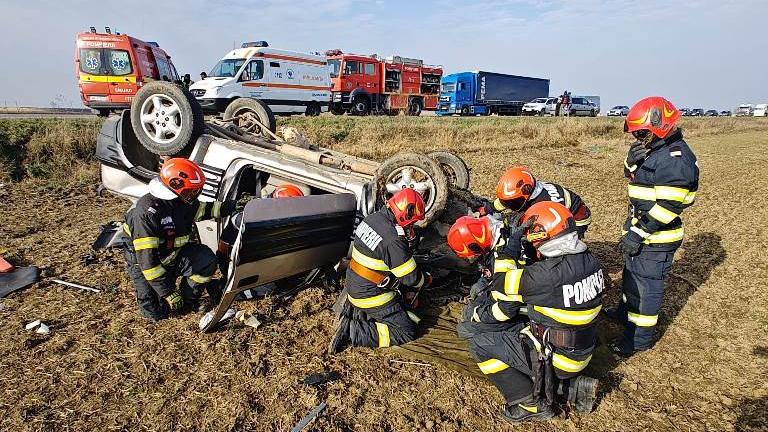 În urma coliziunii, mașina lovită a ieșit de pe partea carosabilă și s-a răsturnat pe un teren agricol. Ambii șoferi, precum și o pasageră în vârstă de 71 de ani din autoturismul răsturnat, au fost răniți și transportați la spital pentru îngrijiri medicale.