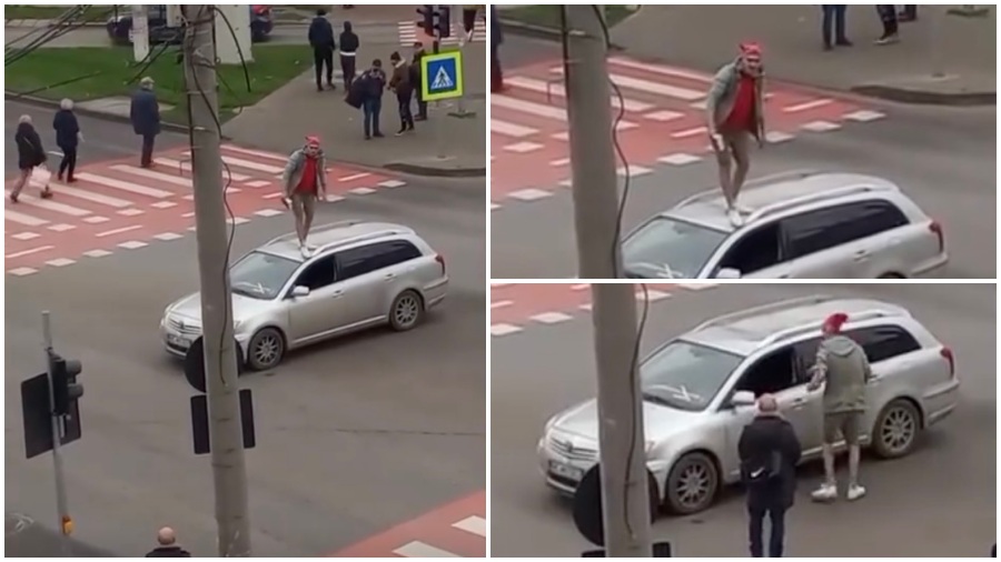 Un bărbat de 23 de ani din municipiul Bacău a fost surprins de trecători într-o ipostază neobișnuită, urcând pe cupola propriei mașini în cartierul Narcisa, ținând o carte în mână. Filmările au devenit virale pe rețelele sociale și au atras atenția autorităților.