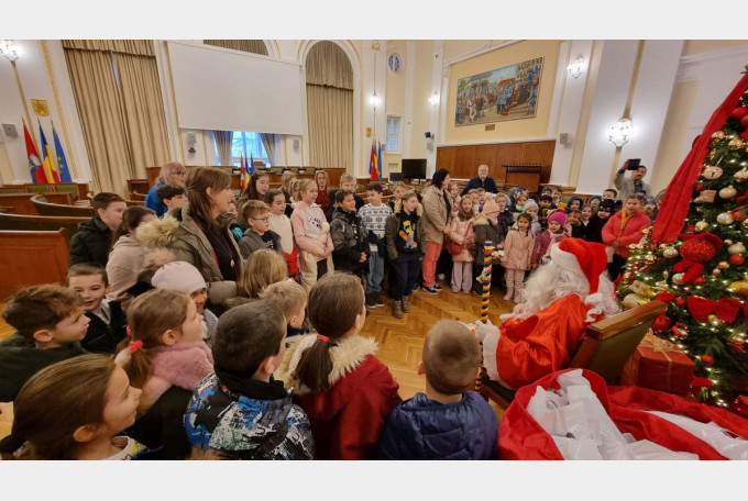 Viceprimarul Teofil Filimon și city managerul Sebastian Lascu au întâmpinat copiii în sala mare de ședințe, unde, în jurul bradului împodobit, s-a creat o ambianță de sărbătoare și cordialitate. Copiii au interpretat colinde și cântece specifice Crăciunului, aducând o notă de autenticitate și bucurie în rândul angajaților și participanților.