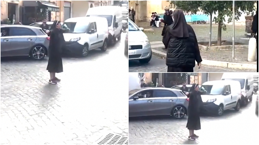 O călugăriță româncă stabilită în Roma a devenit vedetă în Italia după ce a ajutat la dirijarea traficului când un autobuz s-a blocat în intersecție. Îmbrăcată în veșmânt monahal, femeia a mers în mijlocul străzii, dând semnale șoferilor să oprească, să meargă sau să schimbe direcția.