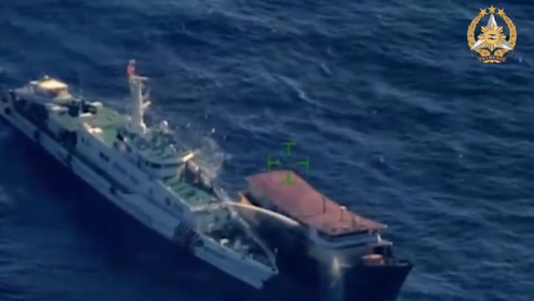 "Video: Navă Philippineză atacată de navă Chineză cu tunuri de apă, patru răniți la frontiera Mării Chinei de Sud